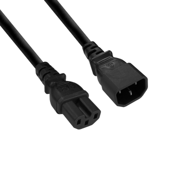 A 10 Amp AC high temperature appliance cord with elastomer flex as required by computer servers and hot kitchen appliances. Fitted with high-temperature, notched-type IEC-C15 appliance connector and an Australian 3-pin mains plug with insulated pins...