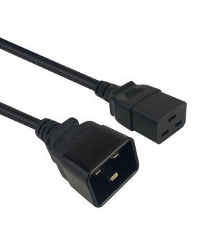 15 Amp 1.5mm² AC power cord fitted with female IEC-C19 15 Amp (16 Amp) and male IEC-C20 connectors.