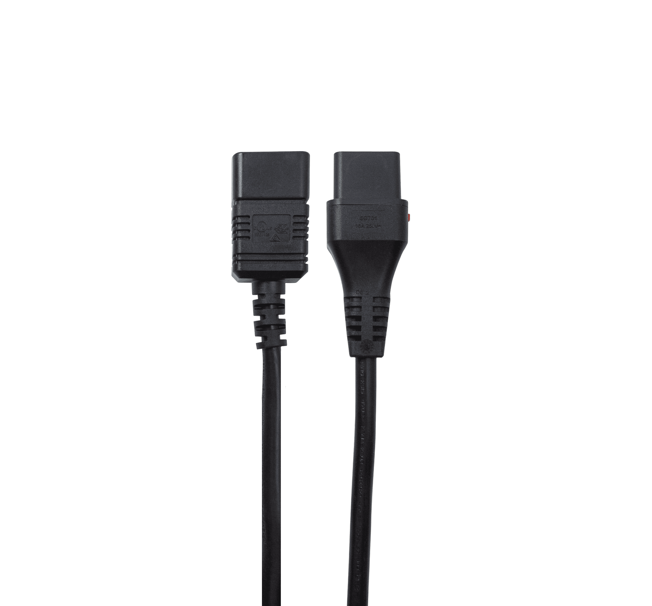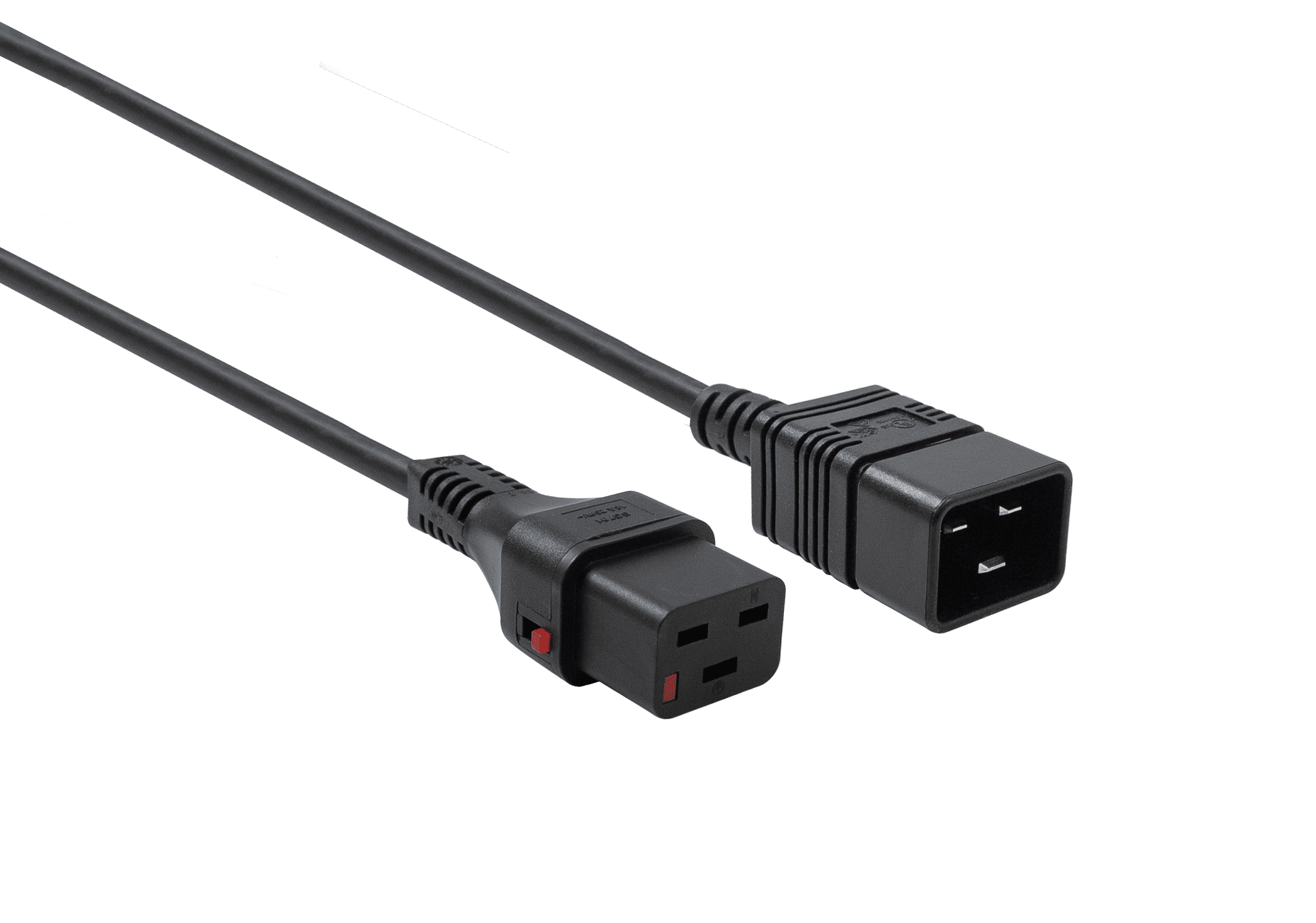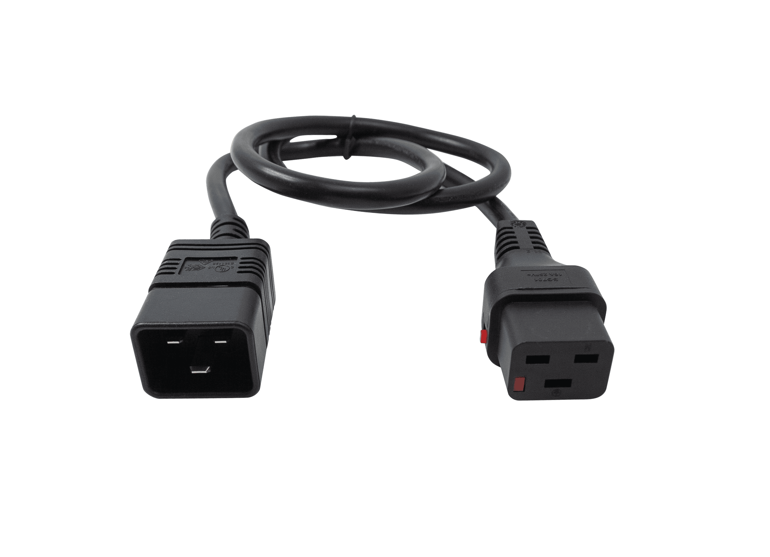 - C19 to C20 Connection: Connects a standard IEC C20 inlet (male) to an IEC C19 outlet (female).