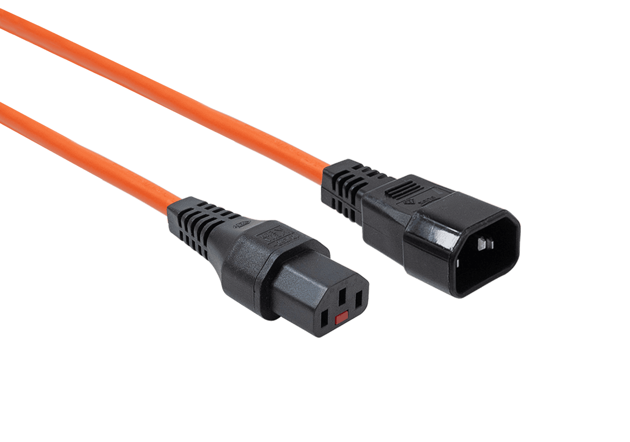 Extend your reach and clearly identify your power paths with the Powercom 3-Metre Orange Locking IEC C13 to C14 Power Cord. This long extension cable is designed for connecting equipment to PDUs located further away, such as in adjacent racks. The locking C13 connector is essential for longer runs to prevent the cable weight from pulling the plug loose, while the orange colour ensures the cable is easily traceable across the distance.